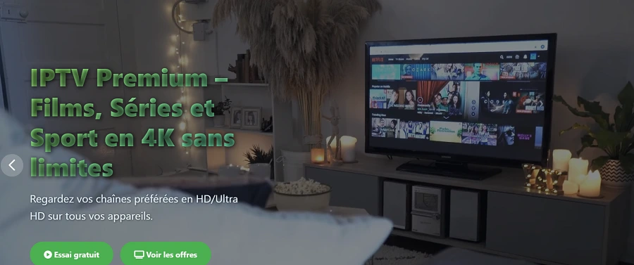 Pack annuel à 60 €, incluant plus de 20 000 chaînes et un vaste catalogue de vidéos à la demande — une solution complète pour ceux qui veulent le meilleur service d’abonnement IPTV.